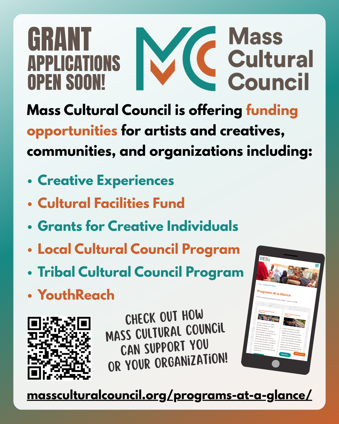 Grant applications for funding from the Mass Cultural Council are opening soon!