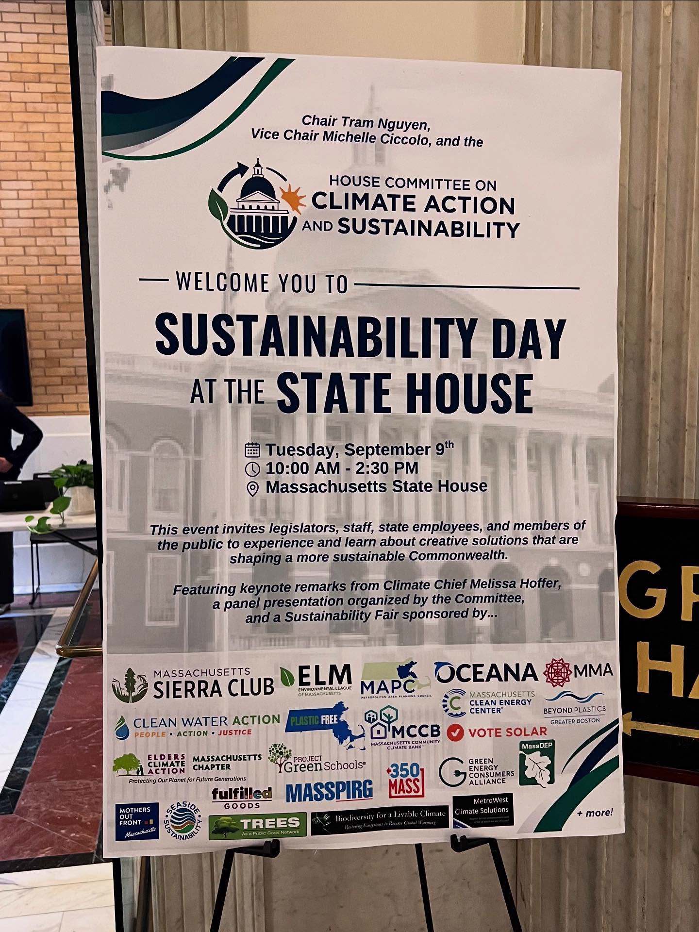 State House Sustainability Day highlights the work being done to shape a more sustainable Commonwealth. Gathered in the Great Hall were 40+ exhibitors including municipalities, nonprofits, advocacy organizations, state agencies, and businesses focusing on the areas of waste reduction, composting, zero waste, decarbonization pilots, climate tech, and battery innovation. |
