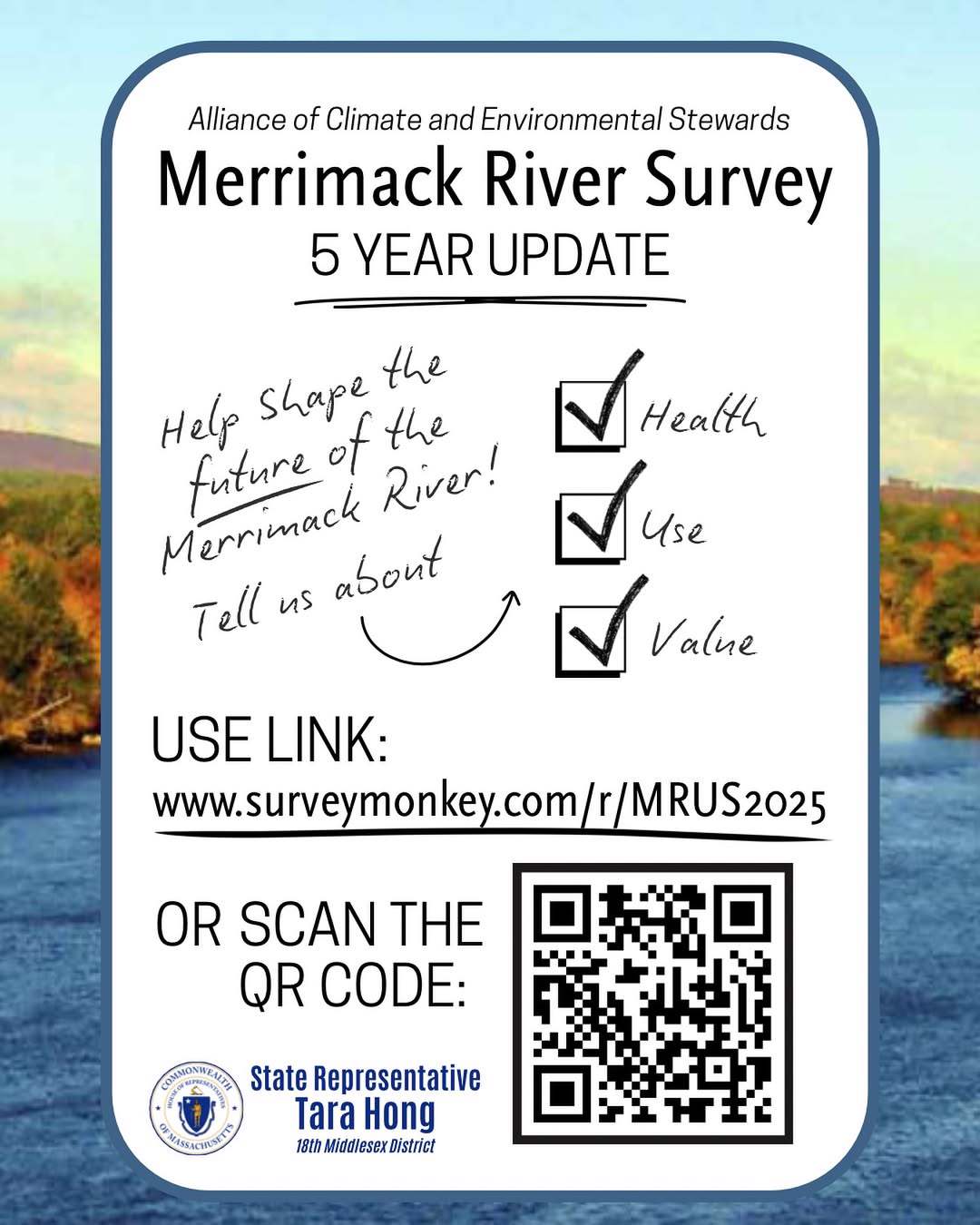 Help shape the future of the Merrimack River! The Alliance of Climate and Environmental Stewards wants your input on the 2025 River User Survey. Whether you work, play, or relax by the river, your observations can make a difference. https://www.surveymonkey.com/r/MRUS2025