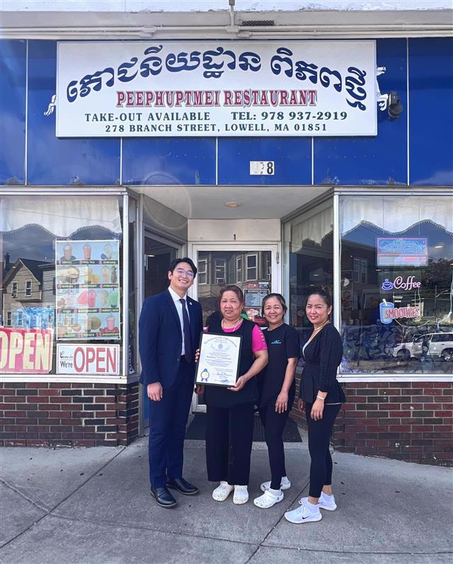 It was great to stop by Peephuptmei Restaurant (ភោជនីយដ្ឋានពិភពថ្មី) to offer a citation recognizing their continued contributions to the local economy and community. Peephuptmei specializes in authentic Khmer cuisine.
